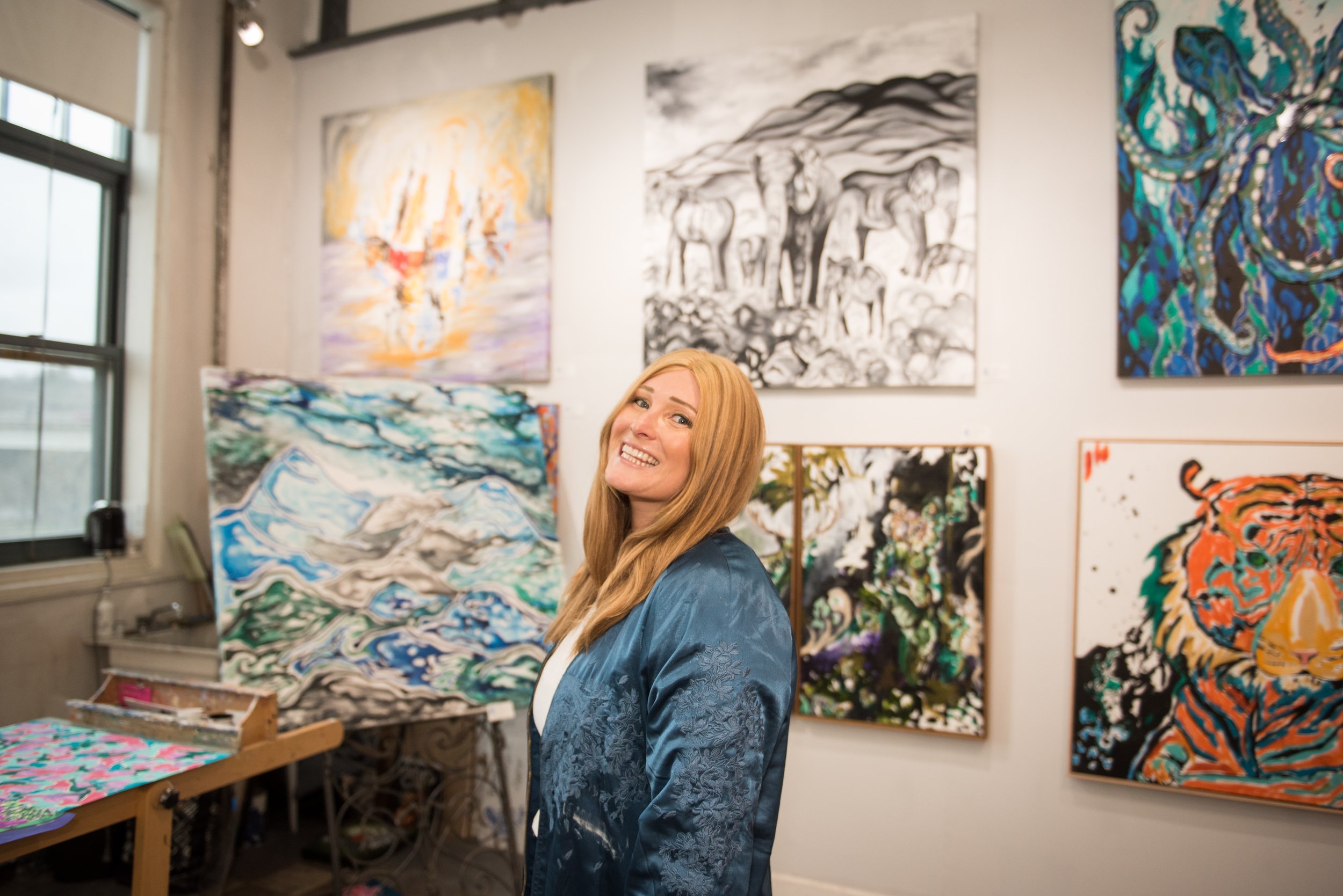 RAD RENDEZVOUS, MAIN Studio/ Gallery. Working studio, paintings, wearable art, gallery.